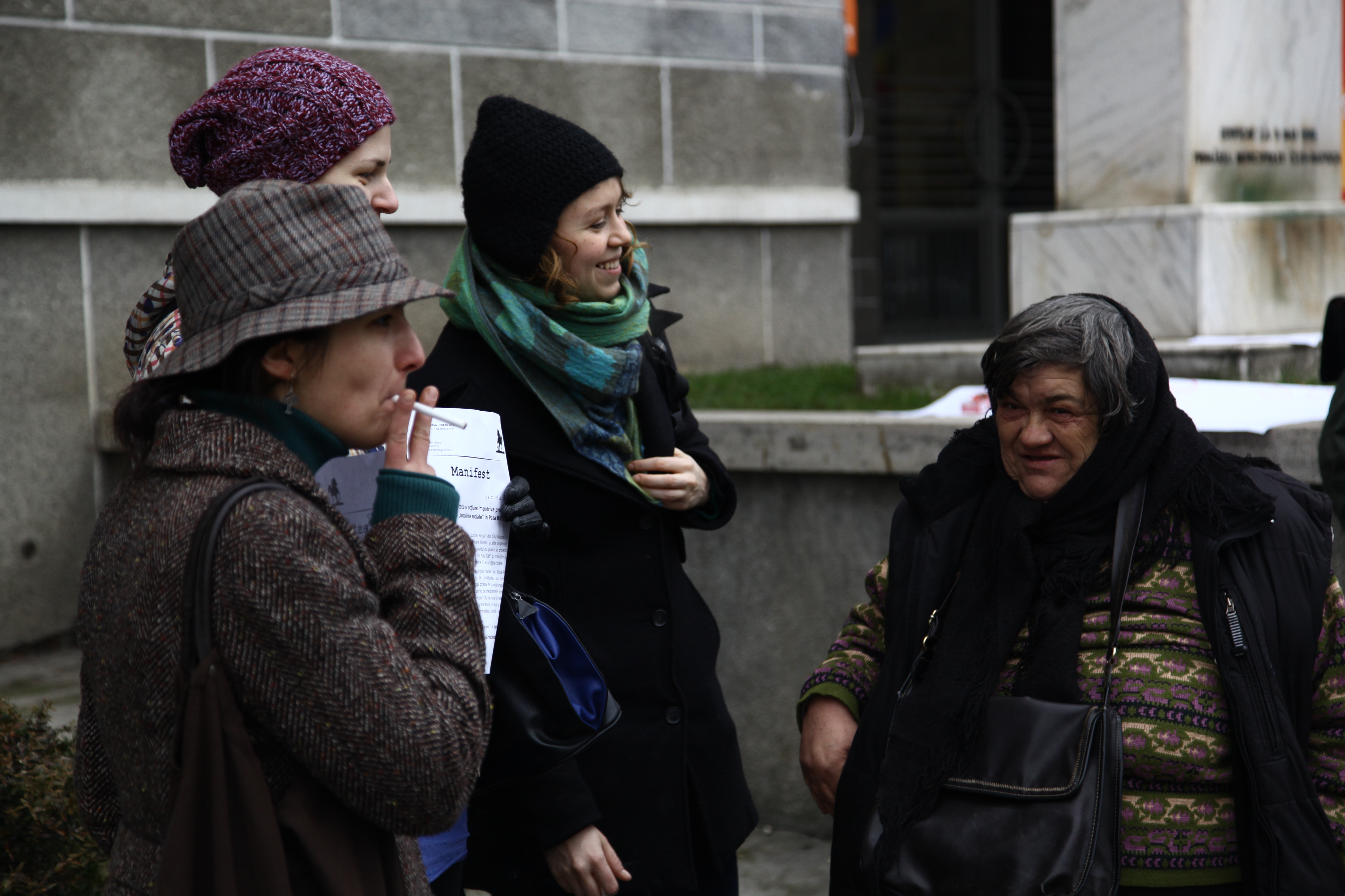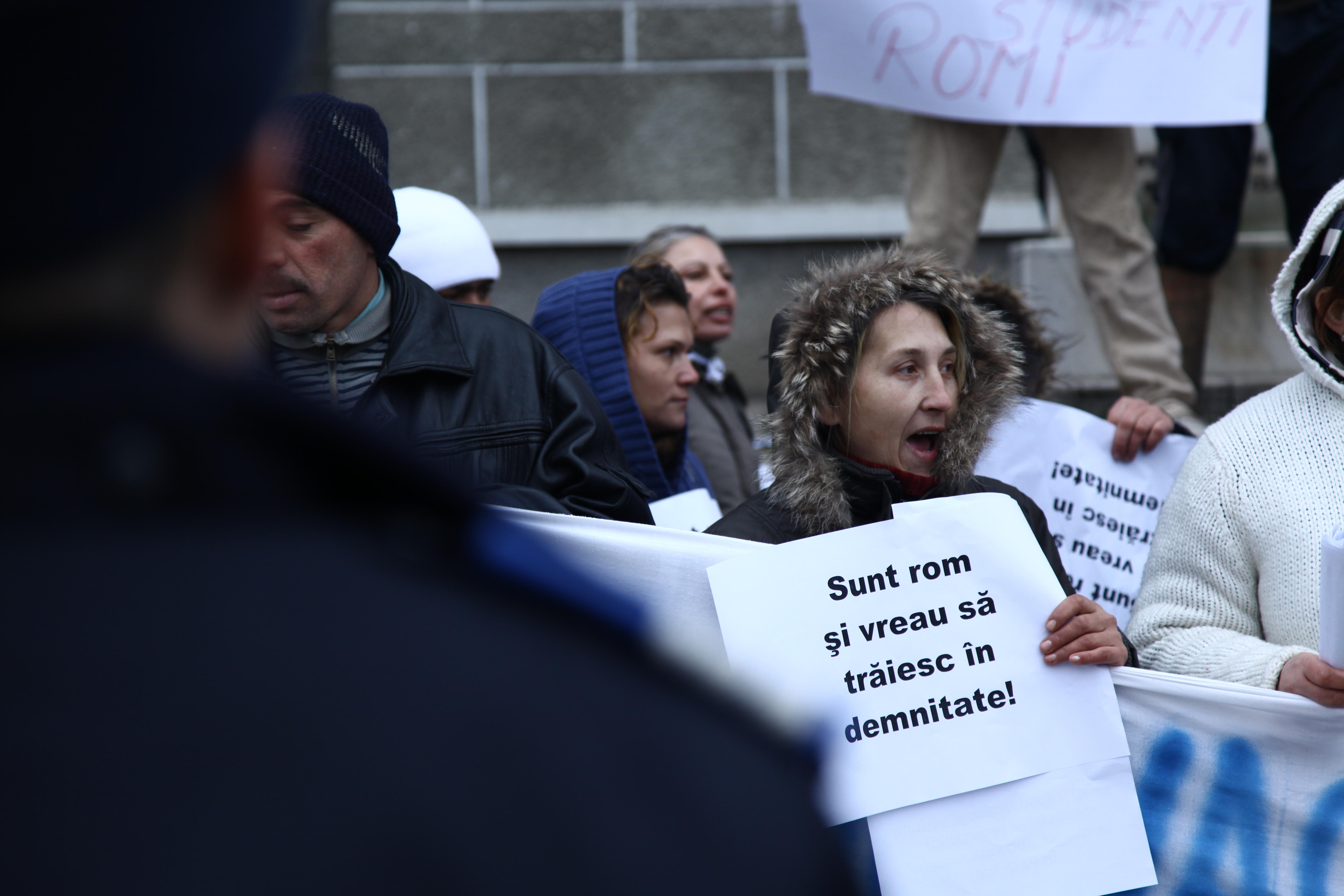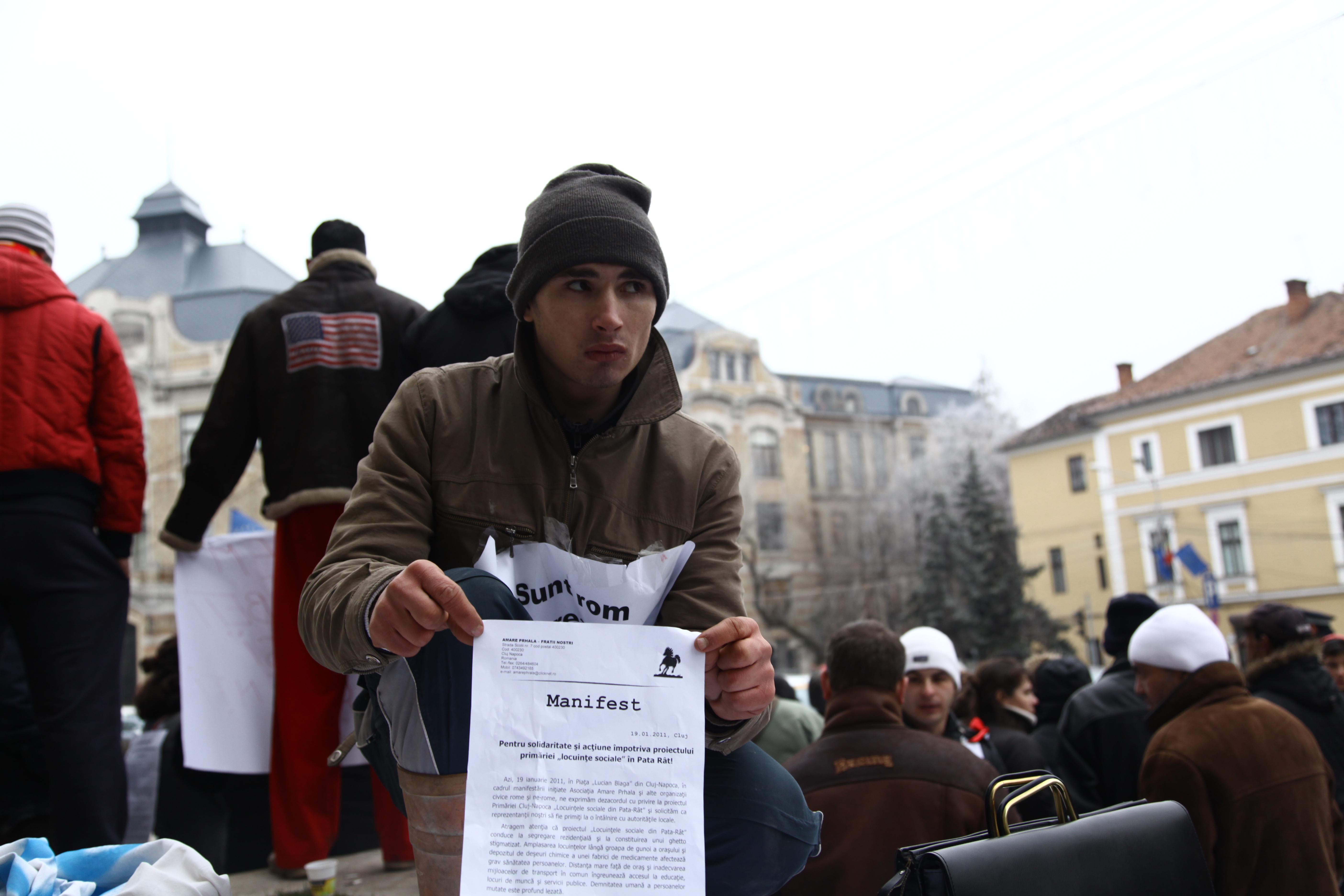 Ce mercredi est un de ce jours intenses. Avec Nani, nous sommes allés à une manifestation organisée pour les familles Roms. Ils réclamaient une entrevue avec le maire Sorin Apostu. Ils exigeaient d’être entendus et considérés comme des “cetăţean”, des citoyens. J’y ai rencontré Maria, une grand-mère de Pata Rat, ainsi que Nicoleta et Andréa, deux étudiantes venues à Cluj pour les études.
