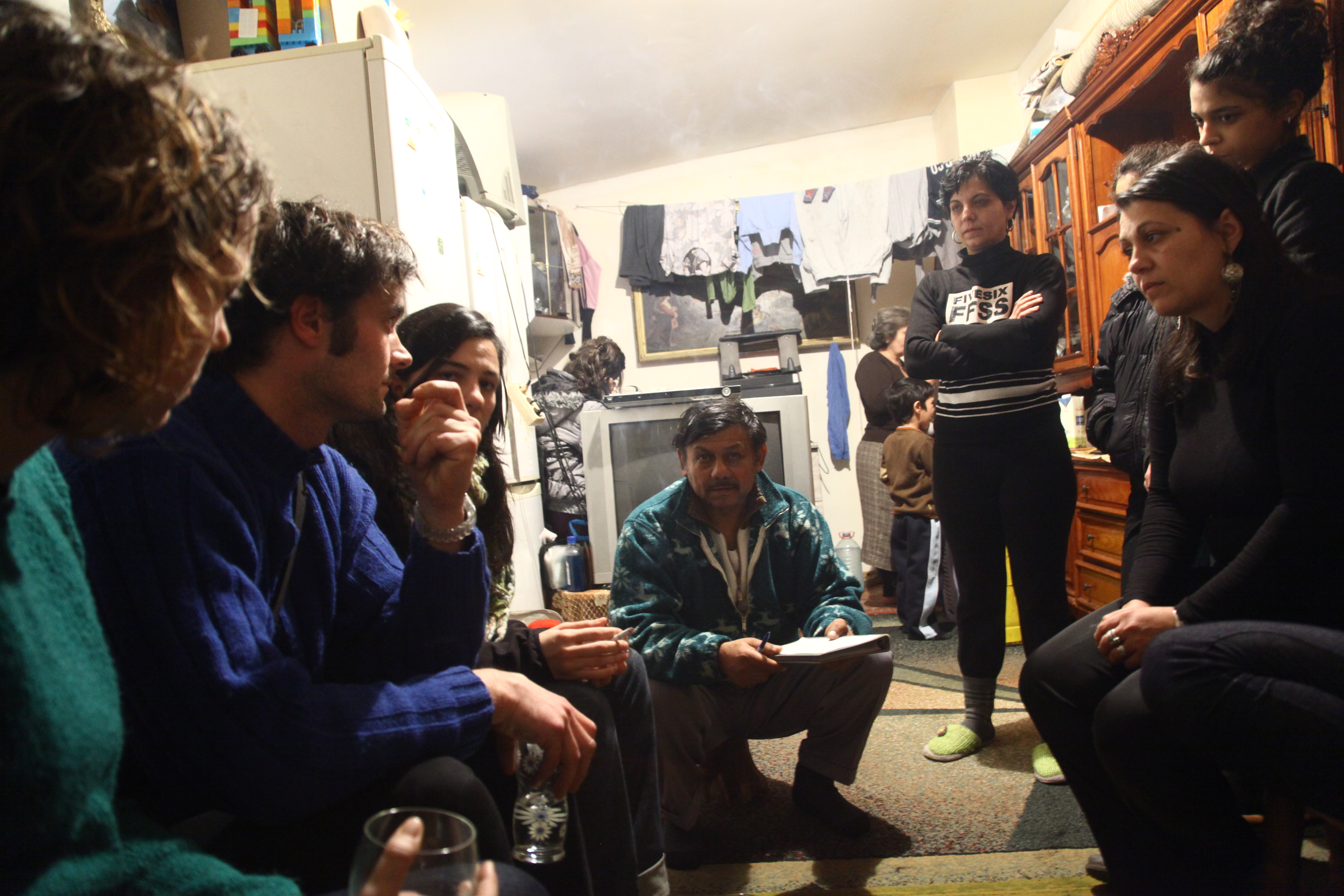 Ce jour là, j’ai eu de bons contacts avec les femmes de la famille. Paloma a déjà travaillé avec des femmes gitanes lors de sa résidence à Tarragona. Je suis donc dans la continuité de son travail et je me réjouis d’avance des moments qui m’attendent avec ces mères de familles, ces jeunes femmes et ces grand-mères. Que vont t’elles me raconter ? Est ce qu’elles resteront sur l’histoire de l’expulsion en exprimant des choses bien maternelles, comme j’ai déjà pu en entendre cette fois là ? Certaines m’ont dit que leurs enfants n’avaient pas pu voir le père noël de l’école parce qu’ils ont du partir avant. D’autres m’expliquent qu’elles ne peuvent pas laver leurs enfants correctement parce qu’il n’y a pas d’eau chaude. Ce sont des émotions de mères.